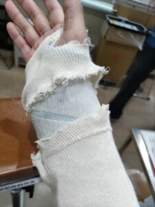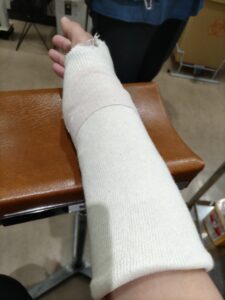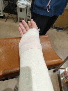 診察では傷口の確認と、手首の可動域の確認をしてもらいました。
